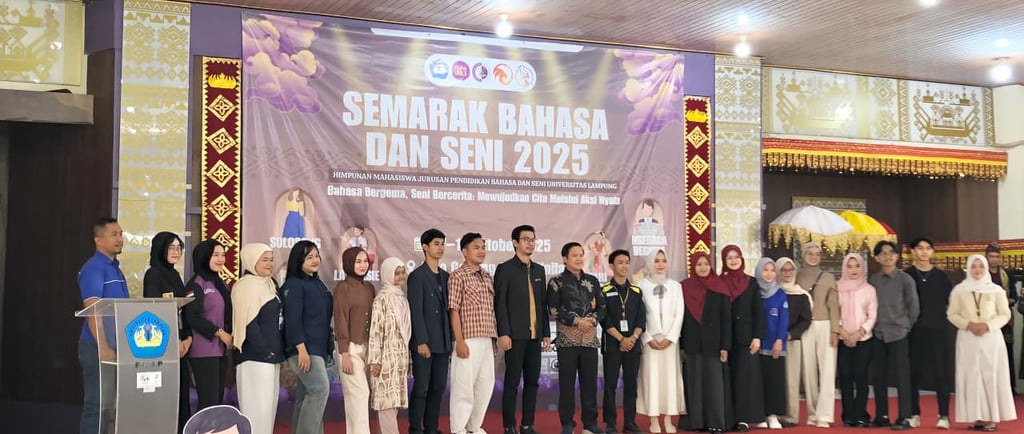 Rakanila (17/10/2025) – Himpunan Mahasiswa Jurusan Pendidikan Bahasa dan Seni (HMJPBS) Universitas Lampung (Unila) menggelar acara tahunan bertajuk “Semarak Bahasa dan Seni 2025”. Kegiatan ini diselenggarakan di Aula K, Fakultas Keguruan dan Ilmu Pendidikan (FKIP) Unila. Kegiatan yang berlangsung pada 17 oktober 2025 ini berlangsung secara luring dan daring.